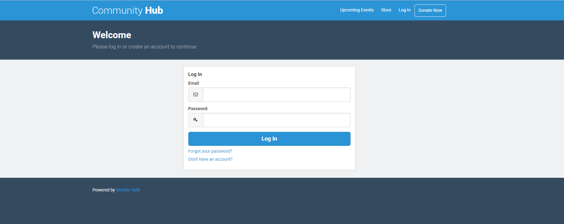 Community Hub is the constituent-facing portal to Nimble AMS built on the Salesforce Community Cloud.