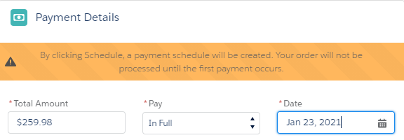 When users select a future date while scheduling a payment during checkout, the message will precisely indicate when the order or payment will be processed, based on configuration. Figure 1 message is displayed when Convert Cart To Order When Scheduled is disabled and Figure 2 message is displayed when Convert Cart To Order When Scheduled is enabled.
