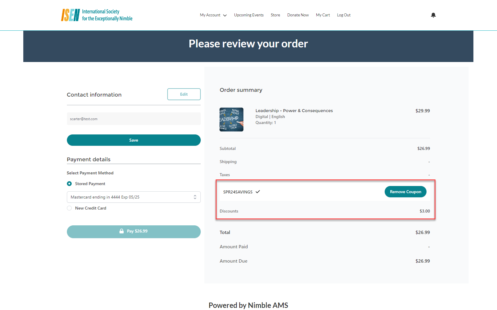 The coupon feature has built-in logic to ensure that the coupon code entered is valid and that only qualified products are discounted. Members can also remove a coupon code and try another code to maximize their savings before completing the purchase.