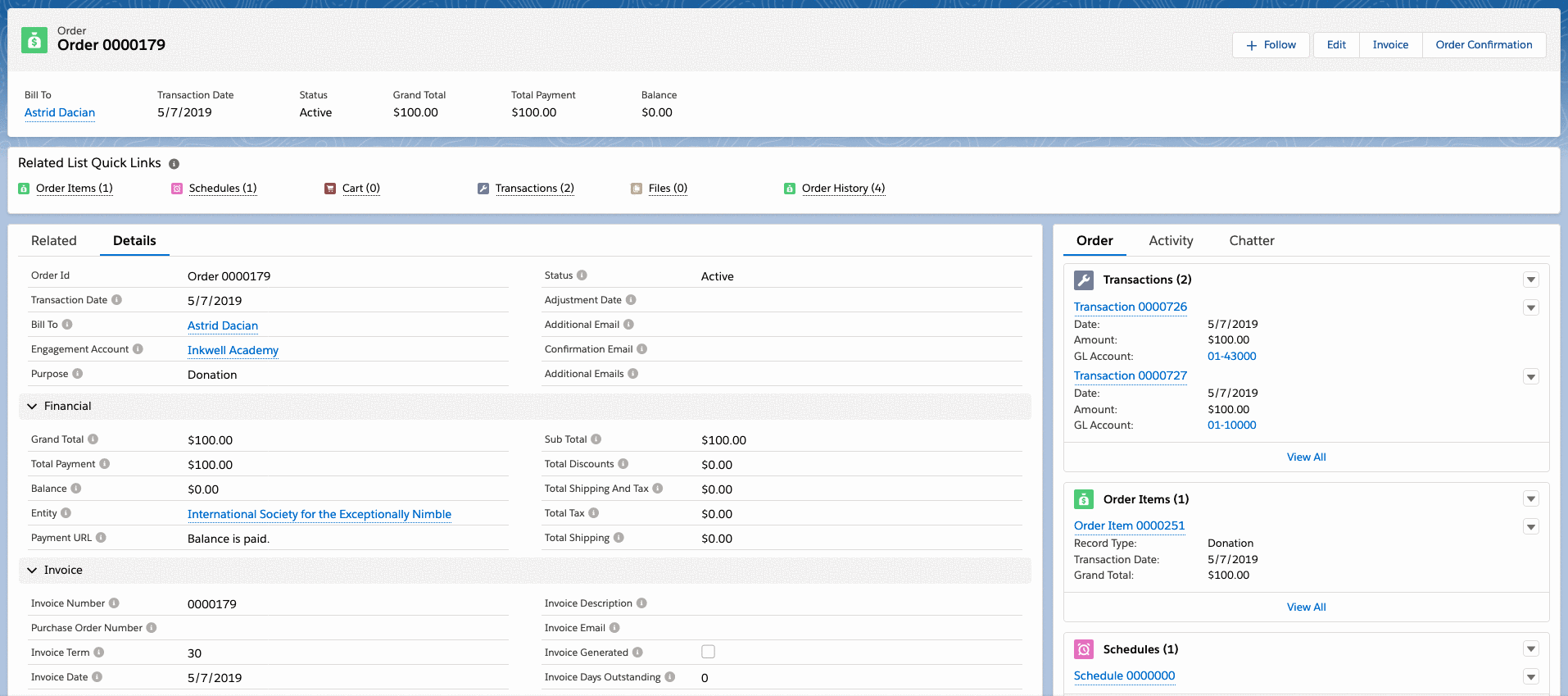 1. On an order record, click the Schedule Payment button.