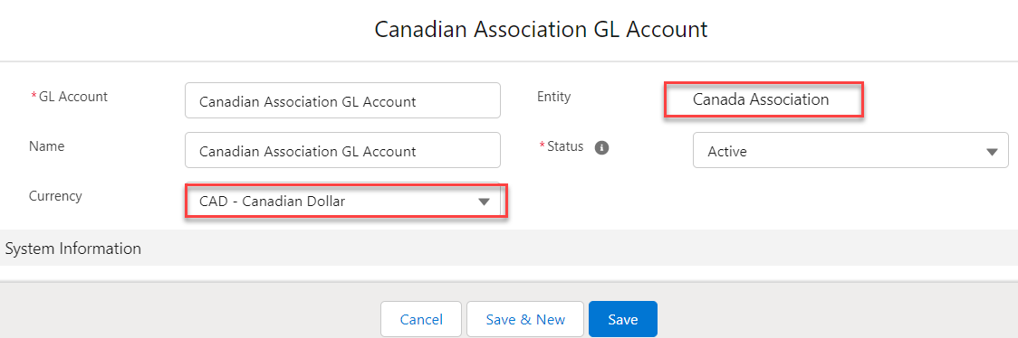 While creating a New GL Account make sure to select the Currency field value that matchesthe Currency field value on the linked Entity record. If theCurrencyfield value of Entityand GL Accountdoes not match, then it throws an error.