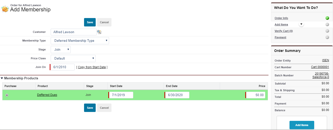 To order a deferred membership/subscription/registration, follow the below procedure: