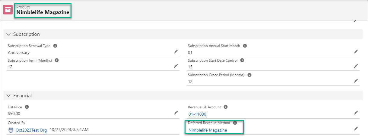 - Then, you have a created Nimblelife Magazine subscription deferred revenue method with the following configuration: