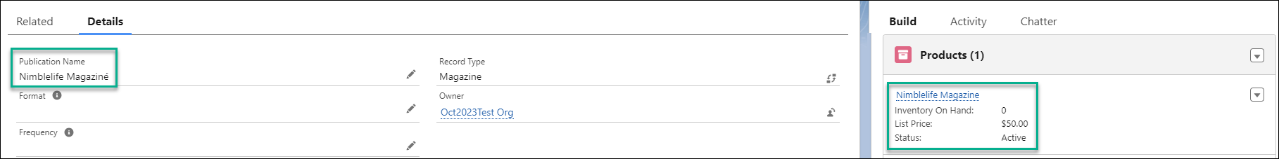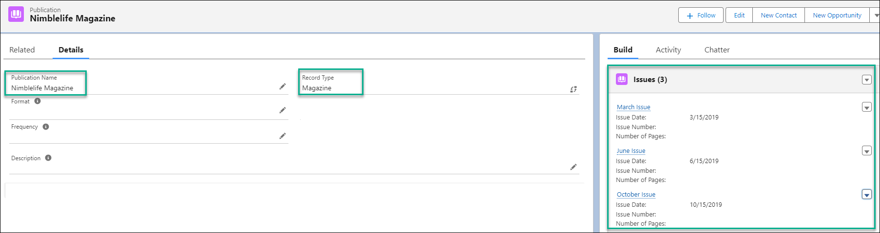 - Here, you have a Nimblelife Magazine publication record with the following configuration and related issues: