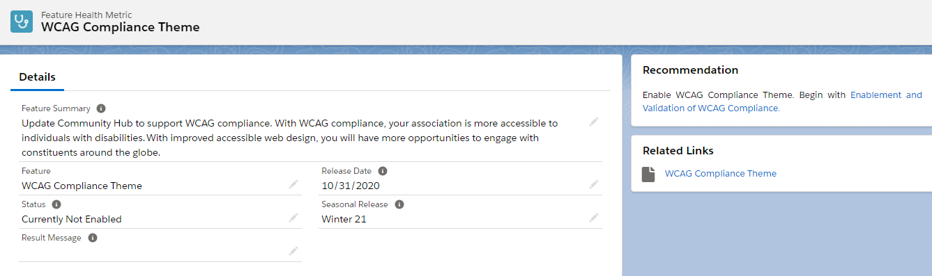 Recommendation: If the feature is disabled, Recommendation will guide you in enabling the feature.