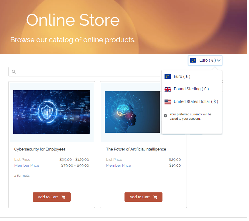 Figure 2. Currency Menu when used in Experience Cloud site