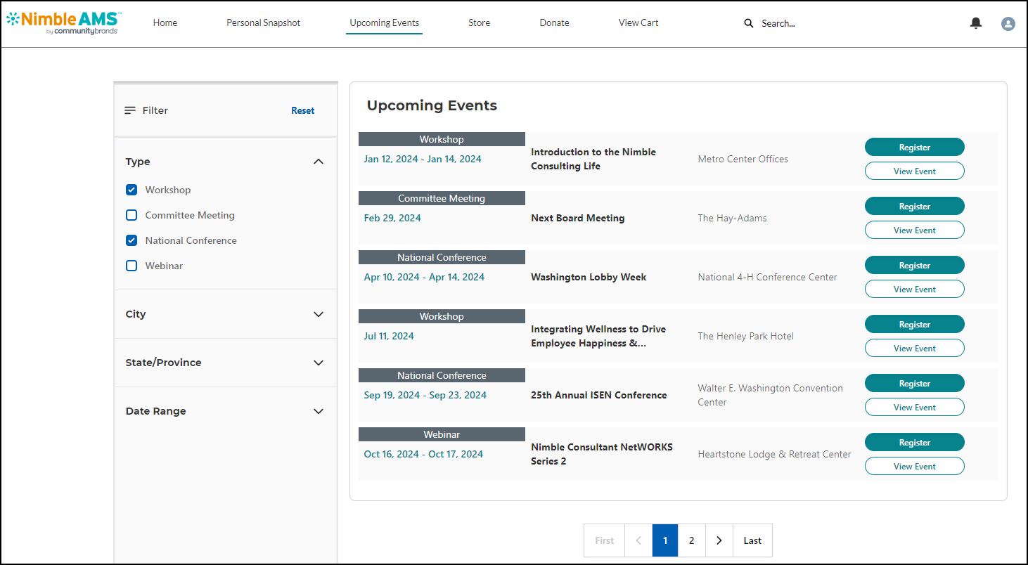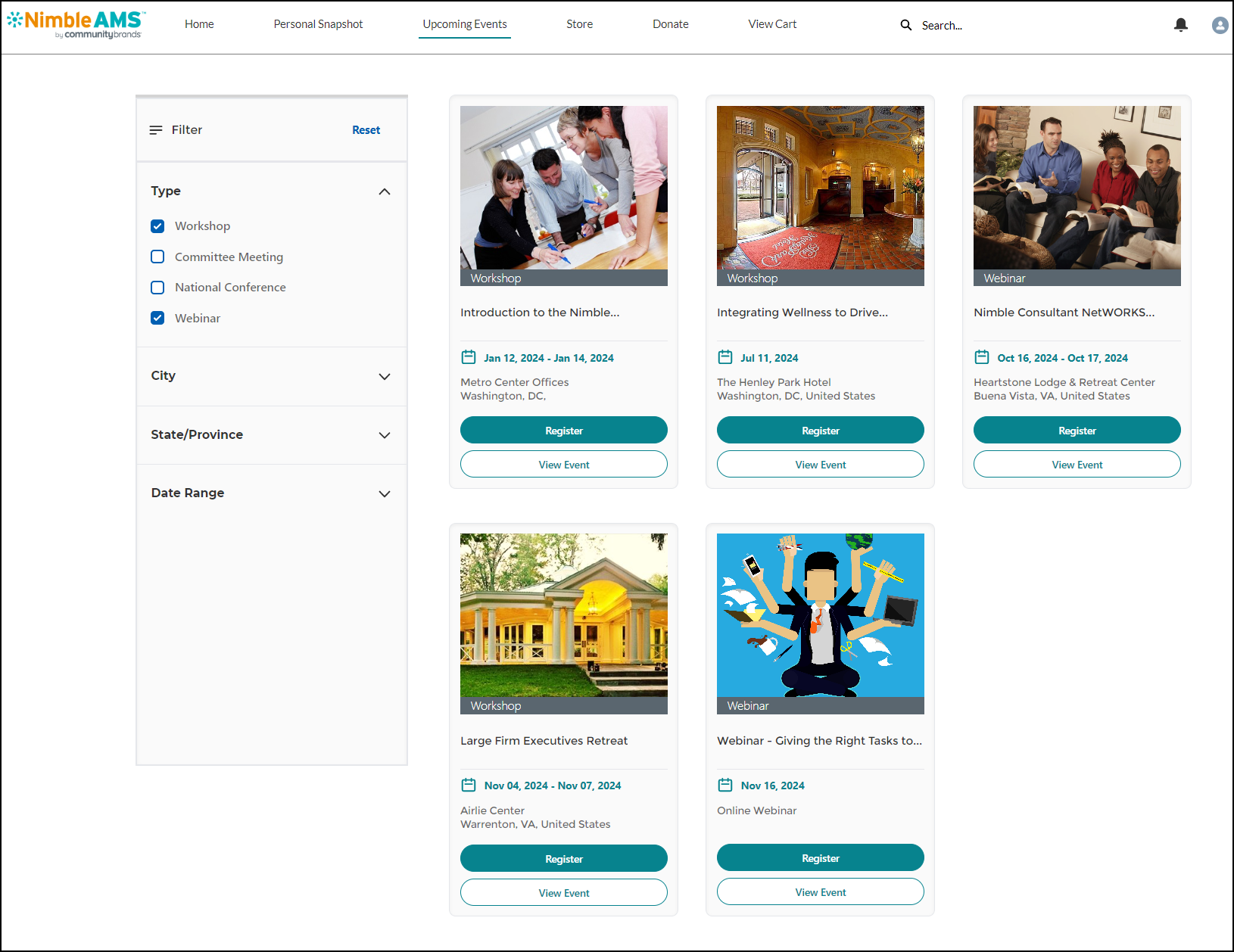 Event Catalog Lightning Web Component (LWC) enables your association to showcase its upcoming events on the Experience Cloud Lightning pages that are visually appealing and modern. App Builders can choose Grid, Table, or Compact layout based on how associations want to display their events to their constituents.