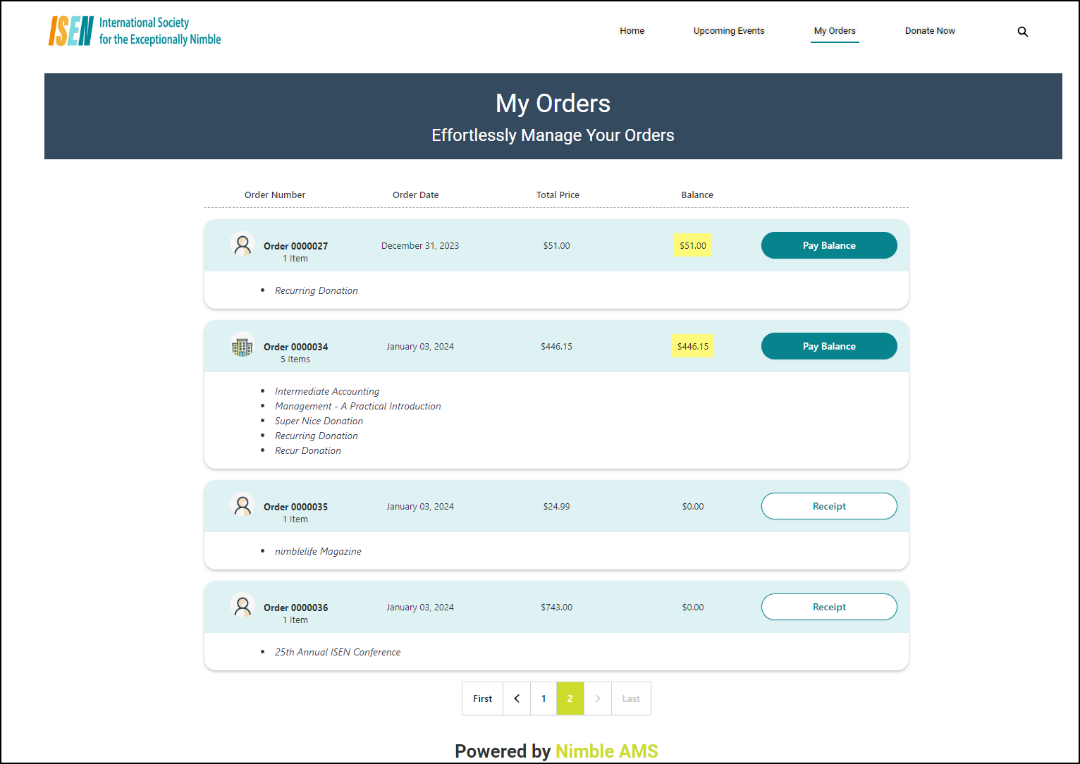 Although Nimble AMS will be shipping one pre-created Out-of-the-Box data source to be readily used by the customers, Association admins or app builders can build their own data source using SOQL or APEX and use it on the My Orders LWC.