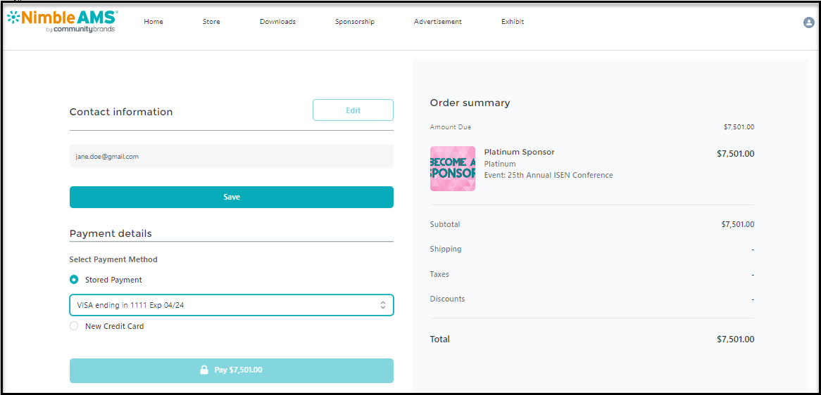 Figure 3. Order Checkout page in Experience Cloud Community Hub without the Back to Shopping Cart option (when 'Buy Now' is used)