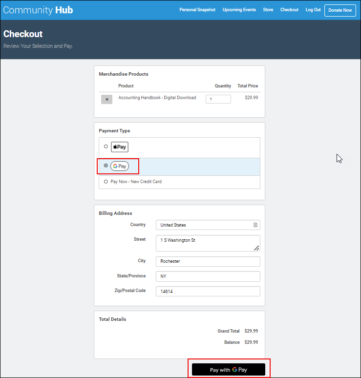 Purchase Products through Member Portal Checkout with Google Pay: