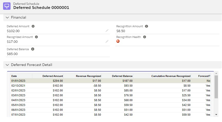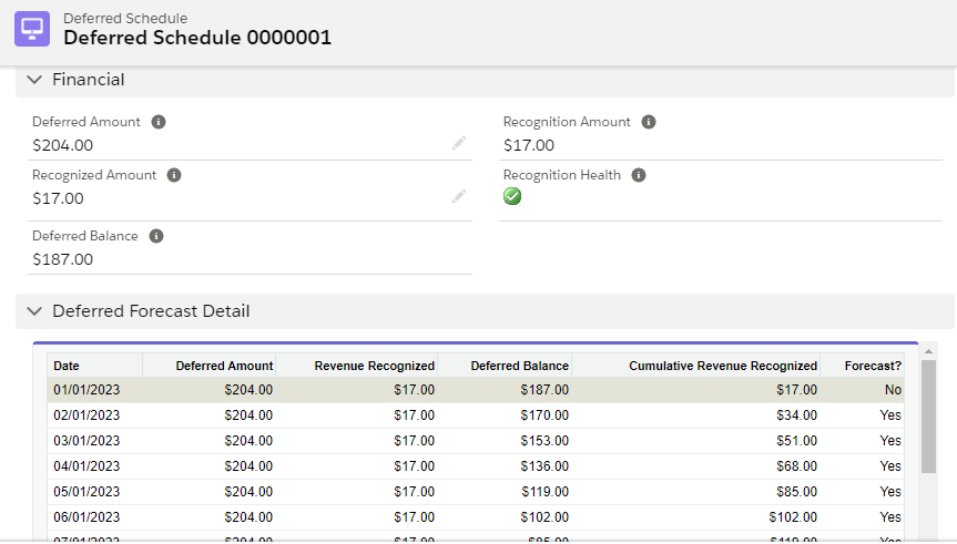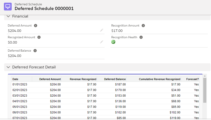 6. Optionally, if using deferred revenue, verify the Deferred schedule for below changes: