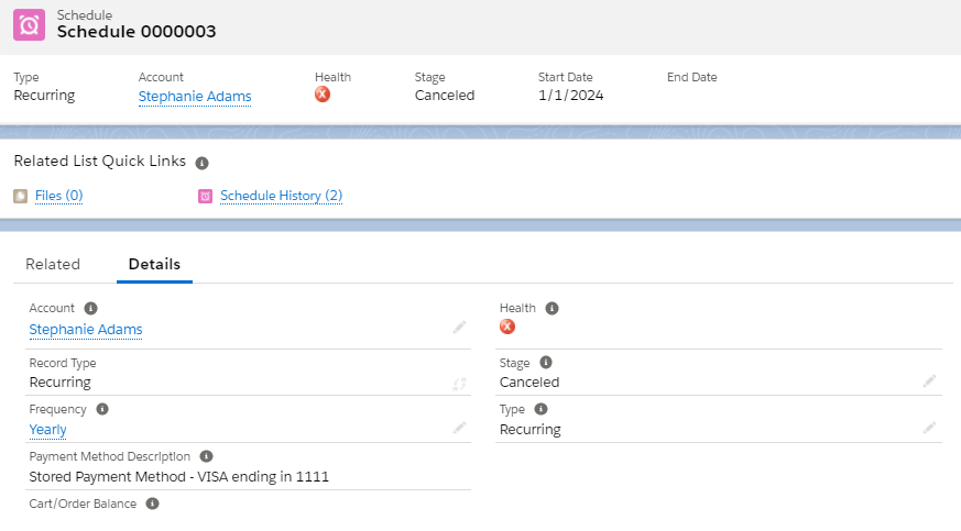 5. Optionally, if the payment is recurring, verify that the recurring payments are canceled.
