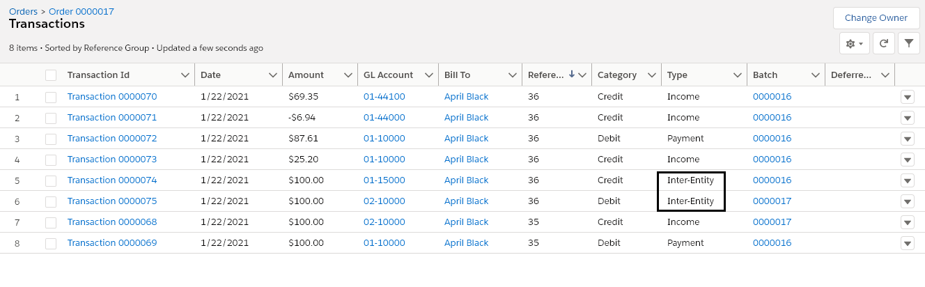 Verify the discounted amount and the generated transactions.