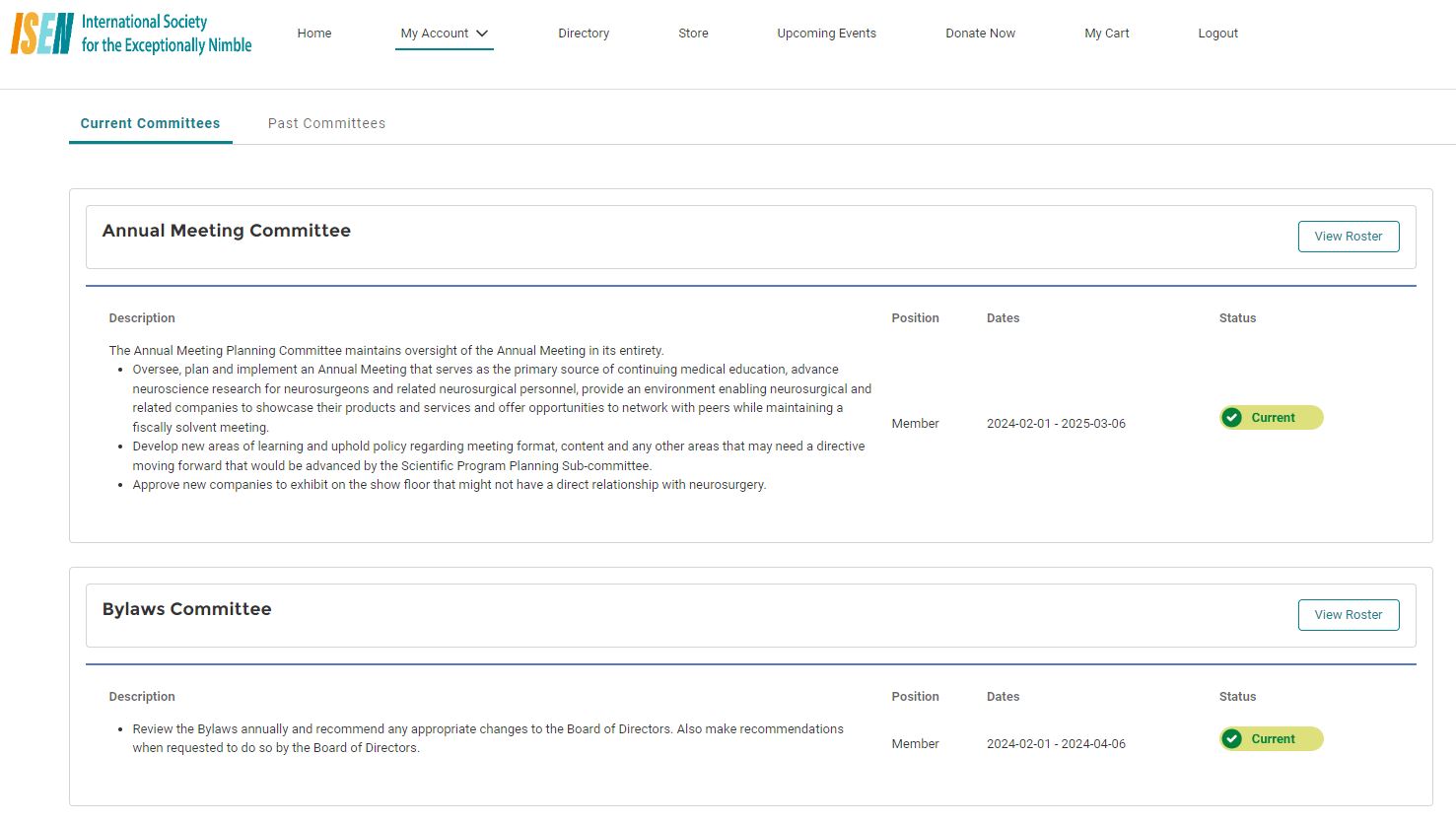 Selecting "View Roster" from an active Committee Membership redirects the users to the Committee Roster: