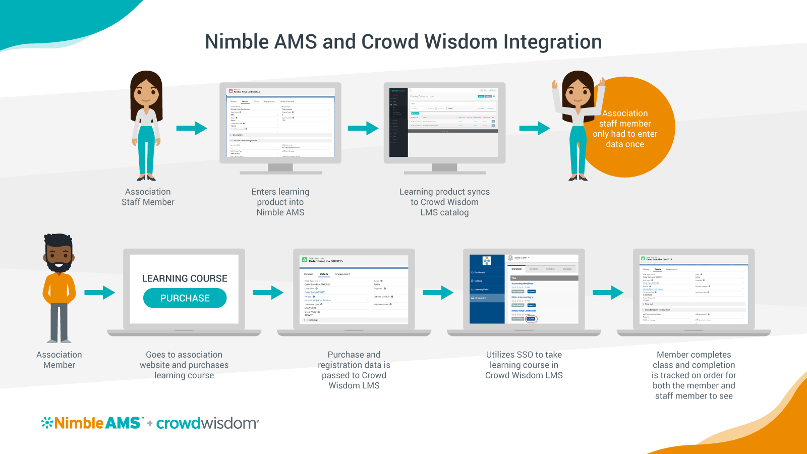 Our learning management software solution – Crowd Wisdom encourages learning anytime, anywhere, and in a variety of formats. Nimble AMS has developed an integration that works with Crowd Wisdom learning management software that allows members and association administrators to take advantage of both platforms.