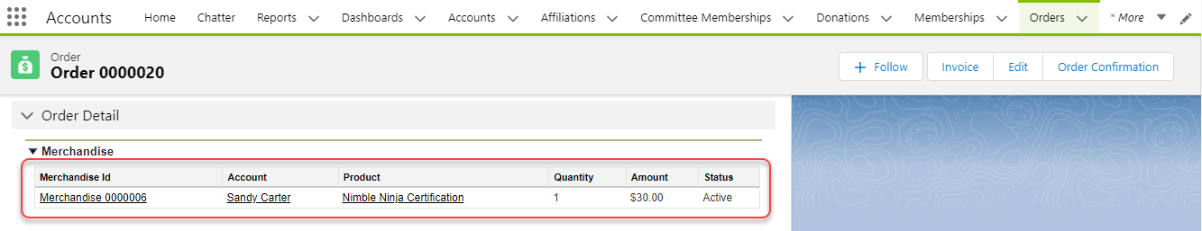 Figure 1. Order placed in Nimble AMS