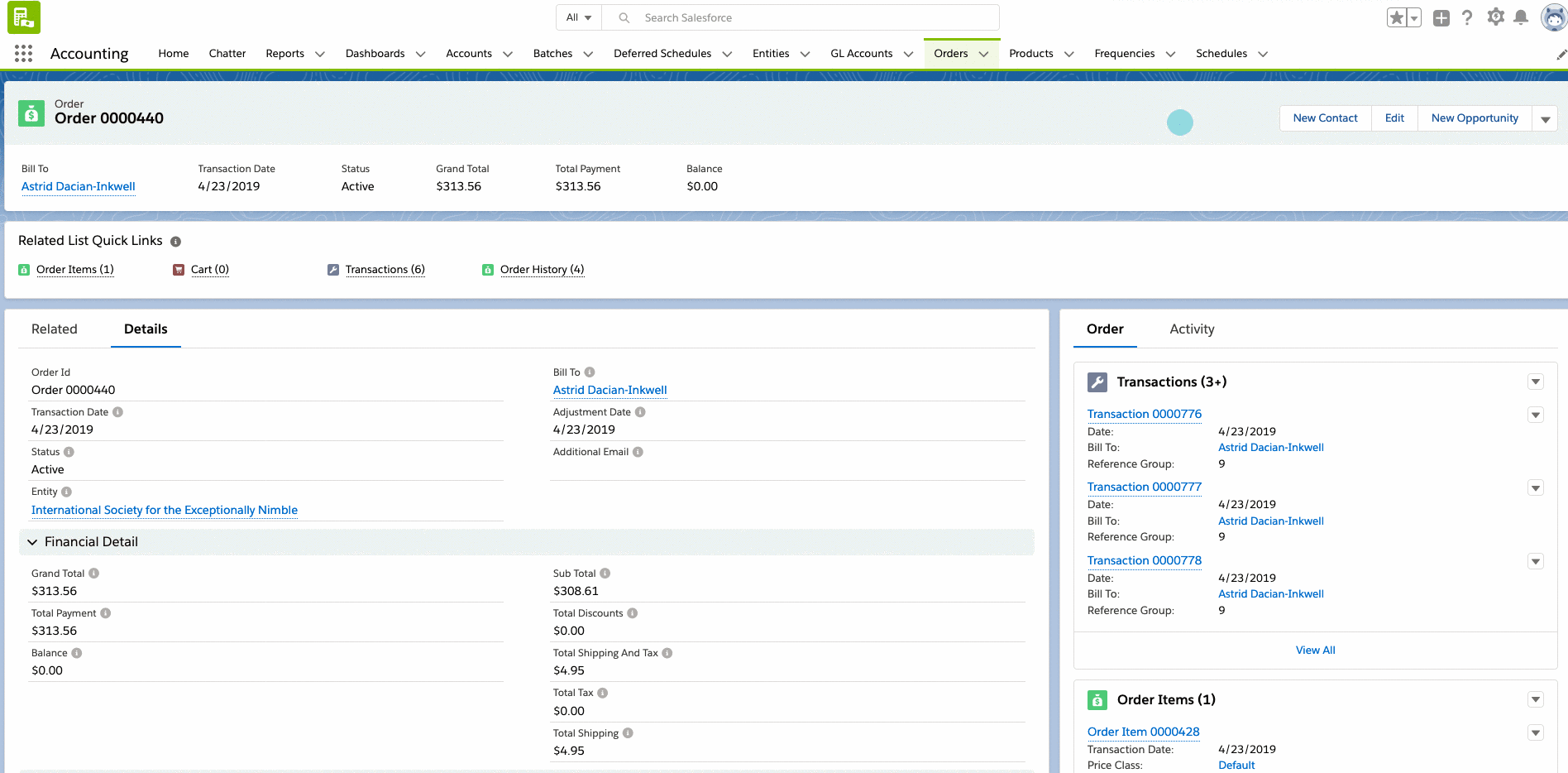 - Alternatively, In the Lightning Experience Staff View, you can access the account's "Orders" related list and click drop-down, then select edit