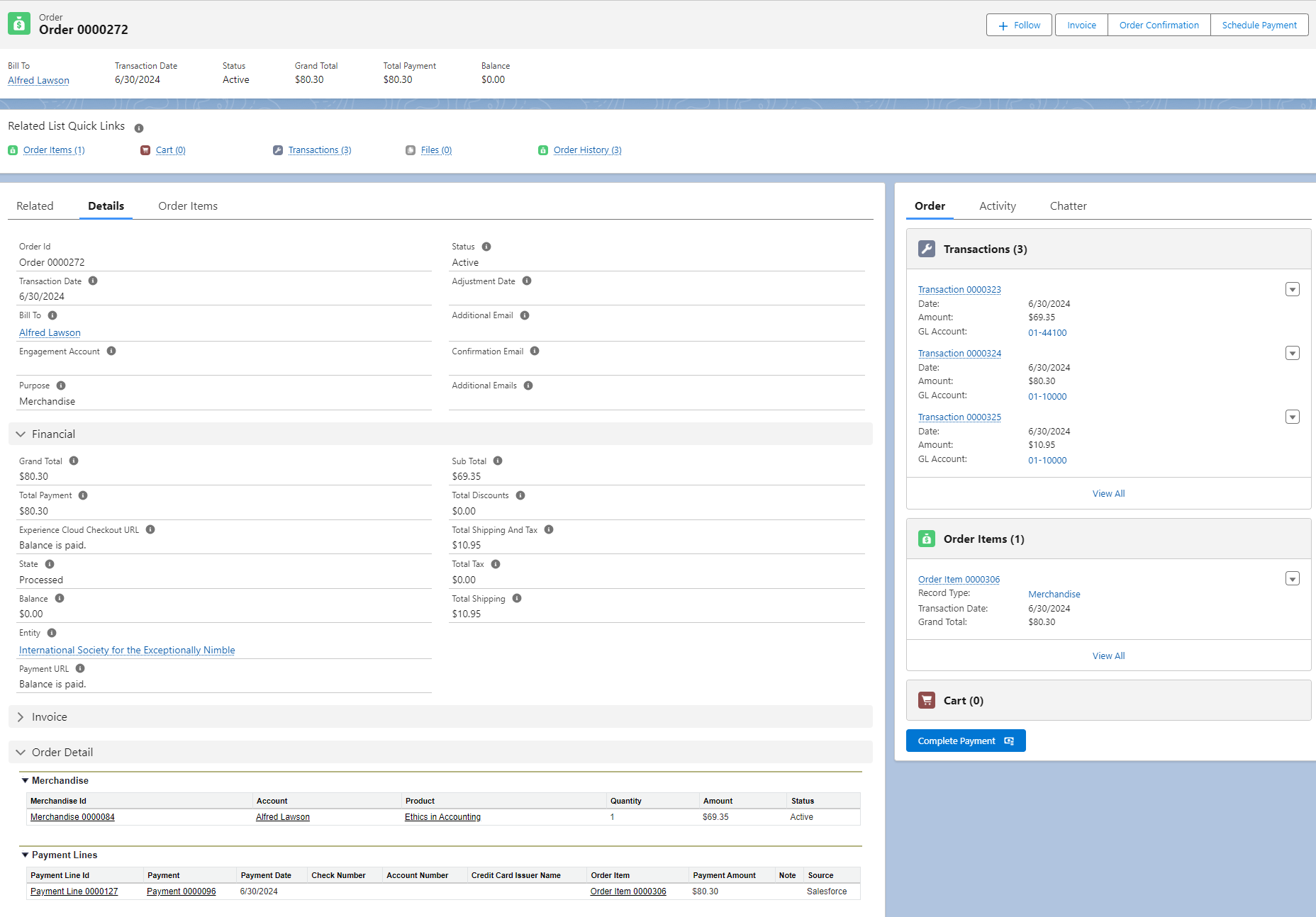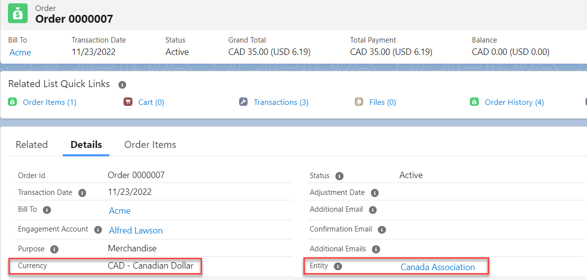 Figure 1. The Screenshot shows the Order Detail record page.