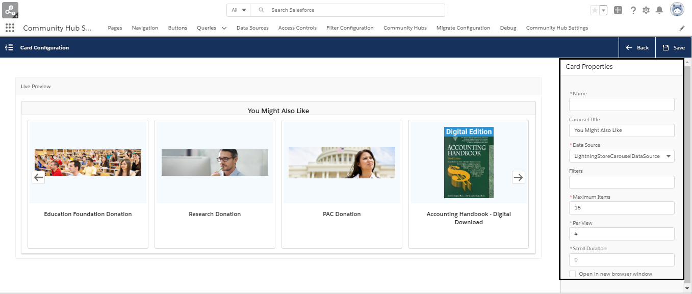 You can add the Lightning Carousel to the any of the pages in Lightning Community or Community Hub. This is a mutually beneficial feature to the Association and its constituents. It helps the Association in enhancing its profit by cross selling the products. Constituents also benefit from increased visibility of other products which compliment their purchase.