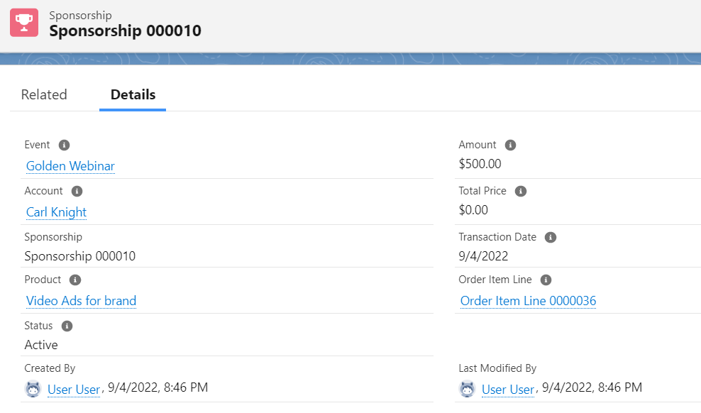 Administrators and Staff can track sponsors and sponsorships by using the Products and the Sponsorships tab. To configure Deferred Revenue Method for this product type, please contact our Customer Success Team.