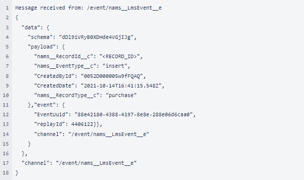 You will receive a confirmation saying that you are subscribed to the nams__LmsEvent__e channel.