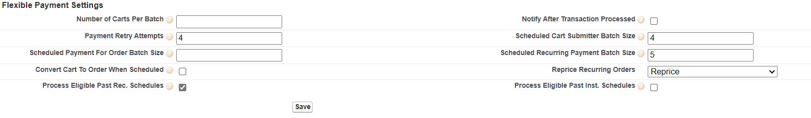 - Under Flexible Payment Settings, check the box for Process Eligible Past Date Rec. Schedules.