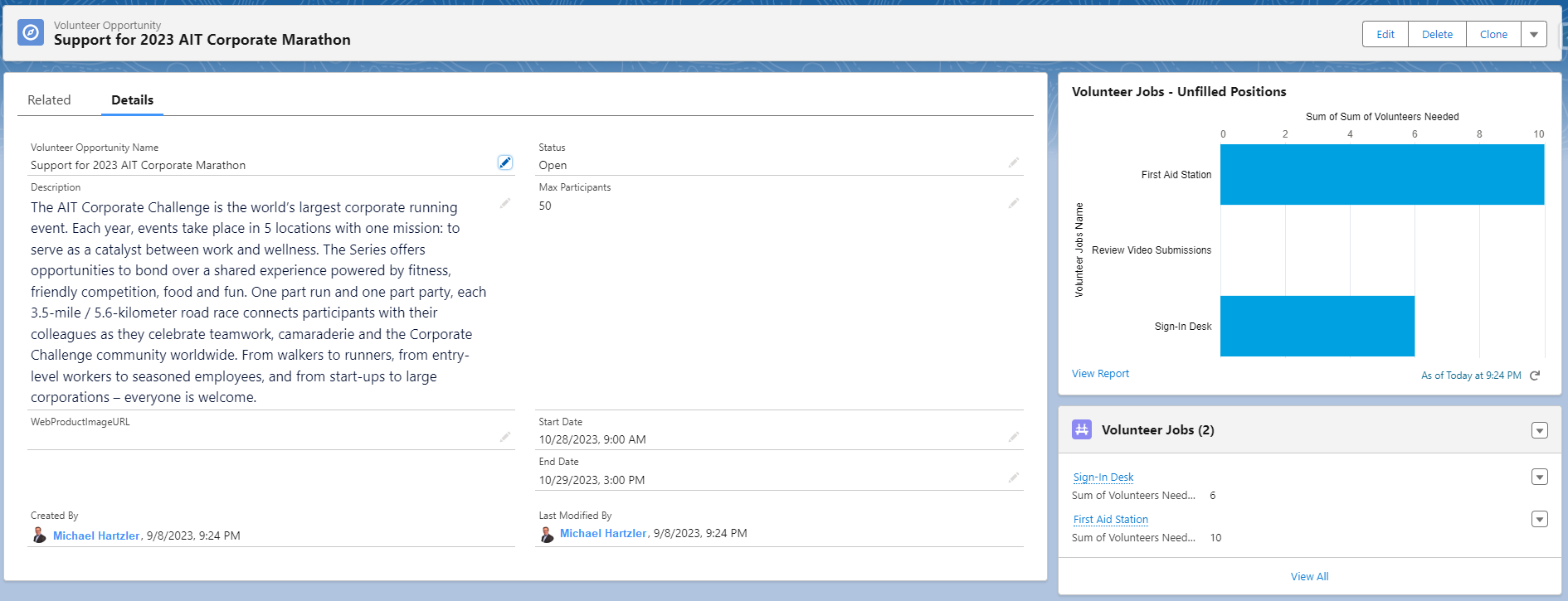 Flexability in creating colunteer opportunities with the ability to easily specify the individual jobs.